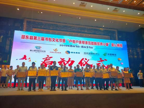 El 30 de julio de 2019, la ciudad de Hunan Shaodong celebró la ceremonia de lanzamiento del 3er.Bolsa para la escuelaFestival cultural y la actividad de la donación de la caridad de \"Familia que ayudan a la familia, ayudando a los familiares y la ayuda mutua para la pobreza y la prosperidad\". En el lugar, 26 estudiantes pobres con excelente desempeño académico fueron donados 2,000 yuanes en efectivo.